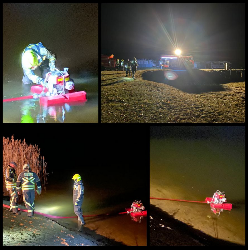 Am 20.03.2025 waren wir beim Campingplatz in Stendenitz und haben die offenen Wasserentnahmestellen, sowie Zufahrten kontrolliert. Am Zermützelsee haben wir dann unsere Schwimmpumpe eingesetzt. Die Schwimmpumpe erleichtert die Wasserentnahme aus offenen Gewässer, ohne dass Saugschläuche benötigt werden. Die Schwimmpumpe hat eine Förderleistung von bis zu 1600 l/min, die sowohl zum schnellen Auffüllen von Tanklöschfahrzeugen, als auch zum Einspeisen in Feuerlöschkreiselpumpen ermöglicht. Die Wasserabgabe erfolgt über einen 2,5" Druckausgang. Der maximale Ausgangsdruck beträgt 3,4 bar. Ein Schmutzschutzsieb verhindert das Ansaugen von größeren Fremdkörpern und ersetzt somit den Saugkorb. Die Schwimmpumpe kann schon ab 8 cm Wassertiefe angewand werden.